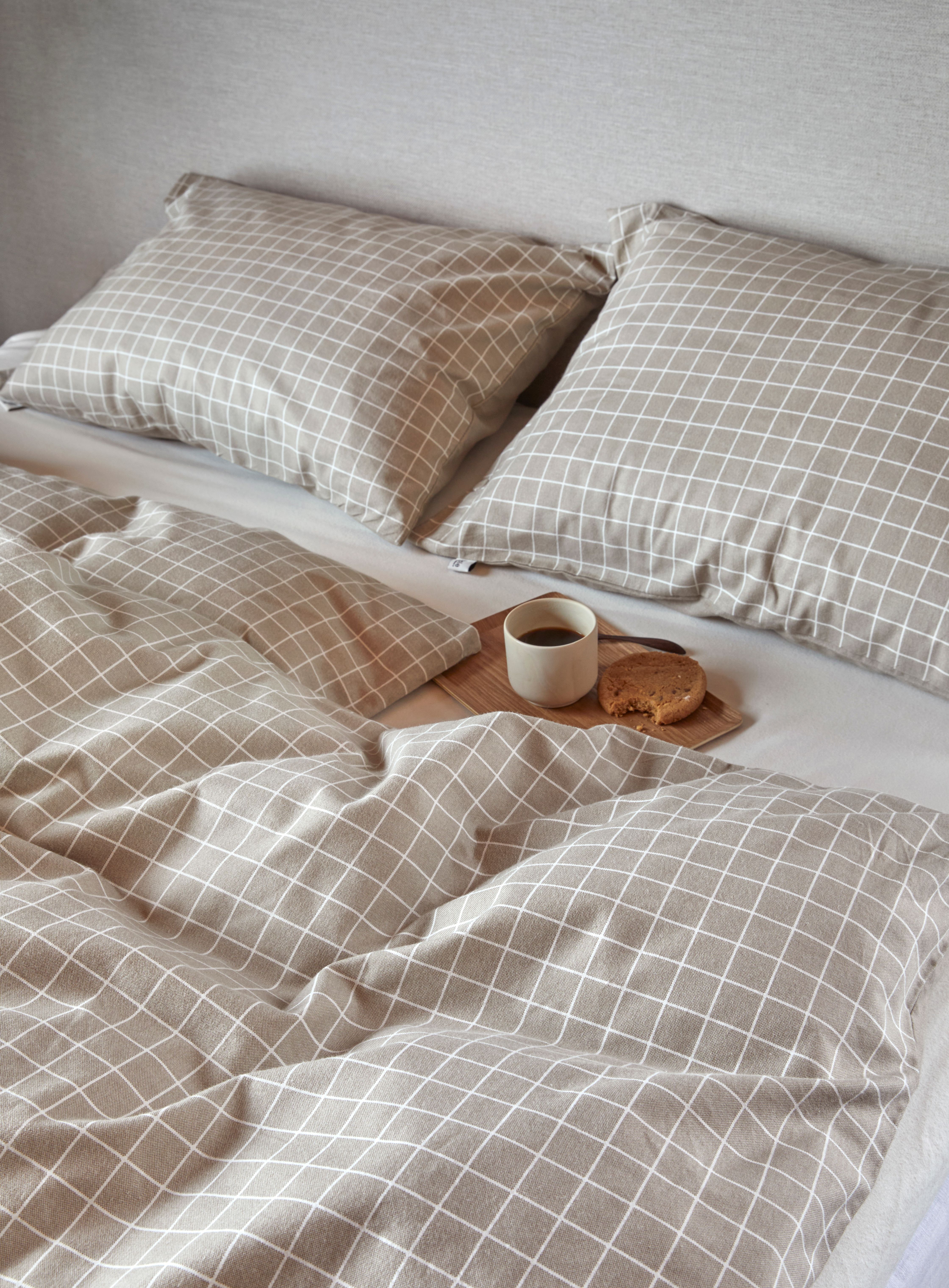 Høies flanell är tillverkad av extra fin bomull som har borstats för att ge en mjuk och härlig yta. Borstningen gör att tyget känns behagligt mot huden och ser varmt, ombonat och inbjudande ut. Flanellsängkläderna isolerar och värmer bra, och är utmärkta för friska höstkvelar och mörka vinterkvällar.